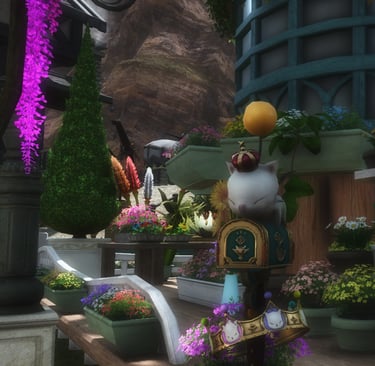 Our offices in Ward 29, Plot 8 in the Mateus neighborhood of the Goblet are not only the Black Chocobo Courier (and our personal residence) but the headquarters of Ruby's Garden Floristry, named for our impossibly cute four-year-old. Andy'd see me pacing, flipping through calendars, spending bells on linkpearl trying to get stories moving, and suddenly that compromise became intensely relevant. She took me out of my office and put me to work assembling corsages and bouquets.