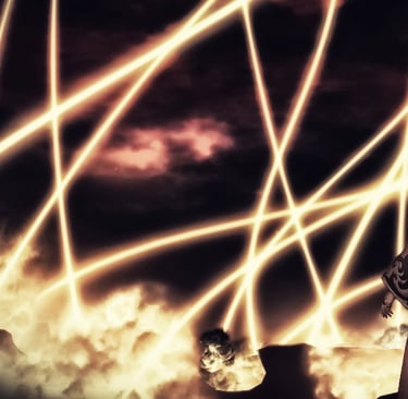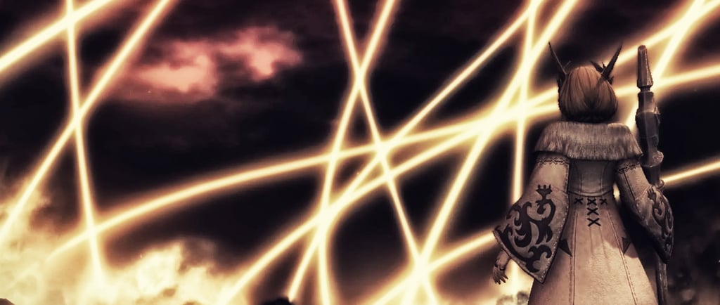 The lesser moon, cracking like an egg and hatching out a monstrosity like Bahamut. Chaos and destruction raining down upon Eorzea, shards of the lesser moon covering the region of the world, digging in like urchin quills, from Ul'dah and Gridania to as far away as the Northern Empty and the Bloodbrine Sea. And the sheer amounts of death and panic among the peoples of Eorzea as they feared the end was coming. The momentary joy as Bahamut was supposedly sealed up again - and the utter terror and hopelessness as he broke free again.